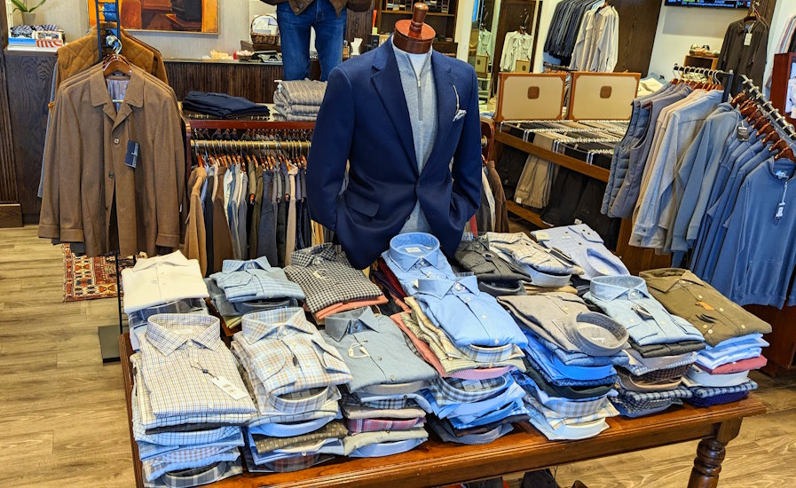 Savings on select inventory, including: • Sportswear 20-30% Off from BRAX, Peter Millar, Polo Ralph Lauren, 34 Heritage, AG Jeans • 5-pocket Pants & Jeans: 20-30% Off • Long Sleeve Sport Shirts: 20% Off • Fall Outerwear: • Sweaters • Vests • Quarter Zips: 20-30% Off • Select Sport Coats: 20-30% Off • Martin Dingman Shoes: 30% Off Shop Early for the best selection |